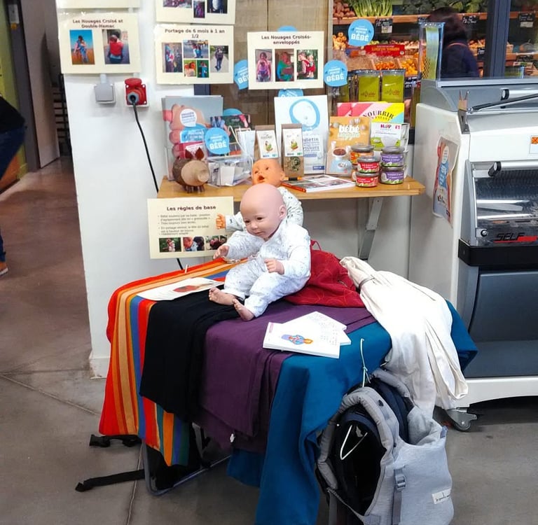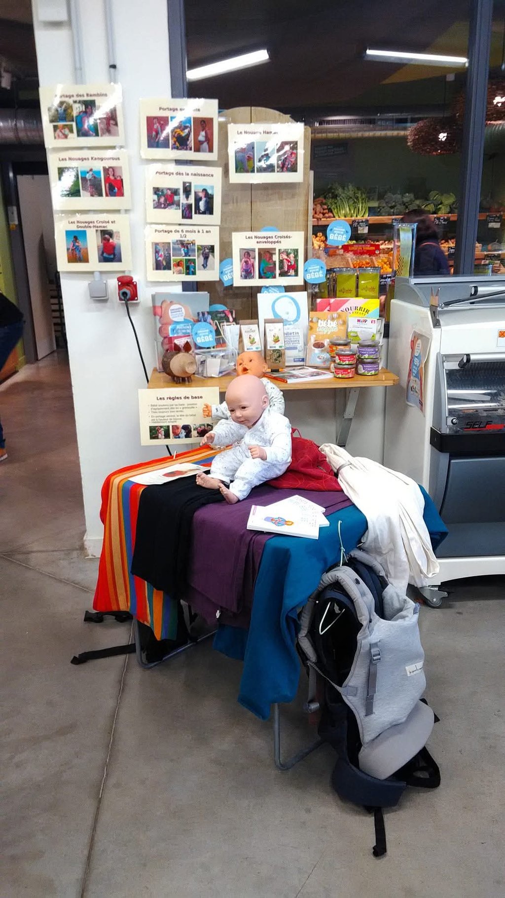 – un atelier en fin de grossesse pour découvrir le portage et les différents types de porte-bébé, en apprendre davantage sur le portage physiologique