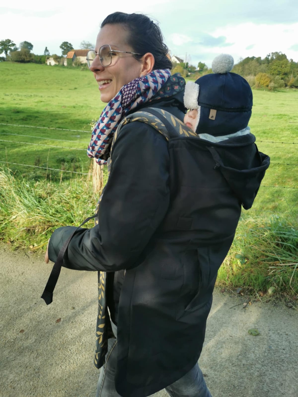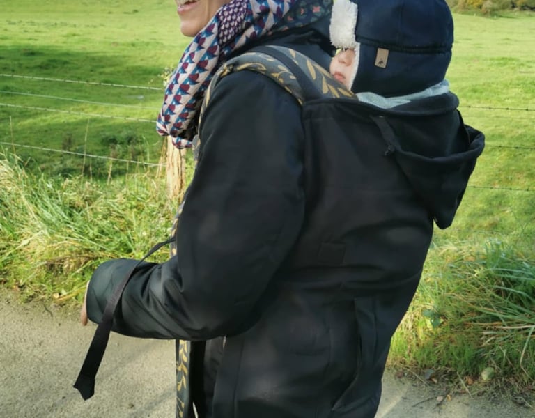 – Il est important d’adapter sa tenue, particulièrement l’hiver, pour bien sentir quand le bébé à froid ou chaud. L’idéal est d’avoir un système recouvrant le bébé en même temps que son parent. Porter avec une combi-pilote n’est pas du tout recommandé.